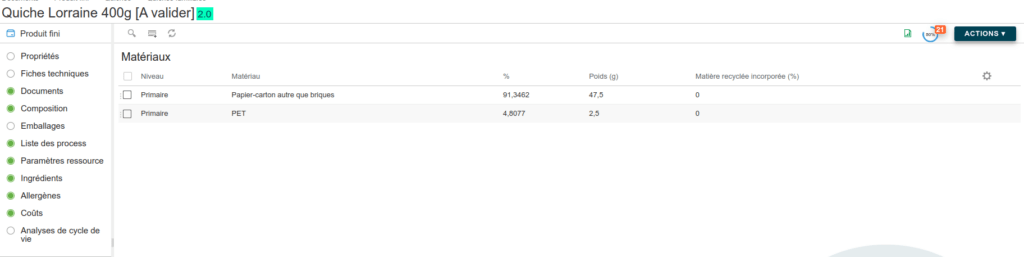 Cette structuration permet de reconstituer la composition réelle des emballages y compris dans le cas de structures multi-matériaux. Les équipes peuvent ainsi identifier rapidement les éléments qui compliquent le recyclage et comparer différentes alternatives dès la phase de conception.
