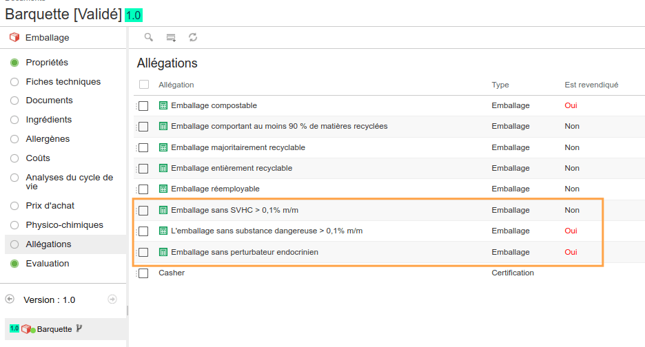 Le système permet également d’automatiser les contrôles réglementaires. Par exemple, il vérifie si certaines substances dépassent les seuils définis (comme les 0,1 % pour les SVHC). Il adapte en conséquence les allégations associées. Les équipes peuvent ainsi identifier rapidement les non-conformités et comprendre leur origine (matière première ou emballage).